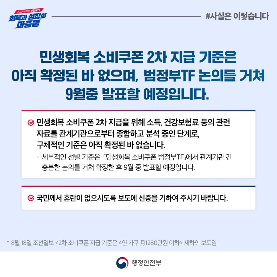 실시간으로 정부 공식 발표, 행정안전부 홈페이지나 민생회복 소비쿠폰 관련 공지 확인하시는 걸 추천드립니다.